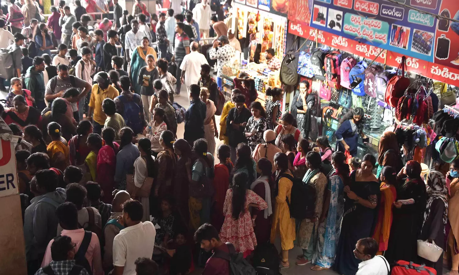 Vijayawada: The Vijayawada bus stop and railway station were jam-packed on Saturday with thousands of passengers arriving and leaving for their hometowns to celebrate the three-day Sankranti festival with their families.