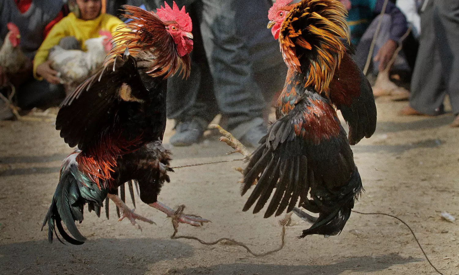 While most regions use knives tied to the birds’ legs, parts of the undivided Krishna district hold knife-free contests, where the rooster’s naturally grown spur (kata) is sharpened and used as the weapon.