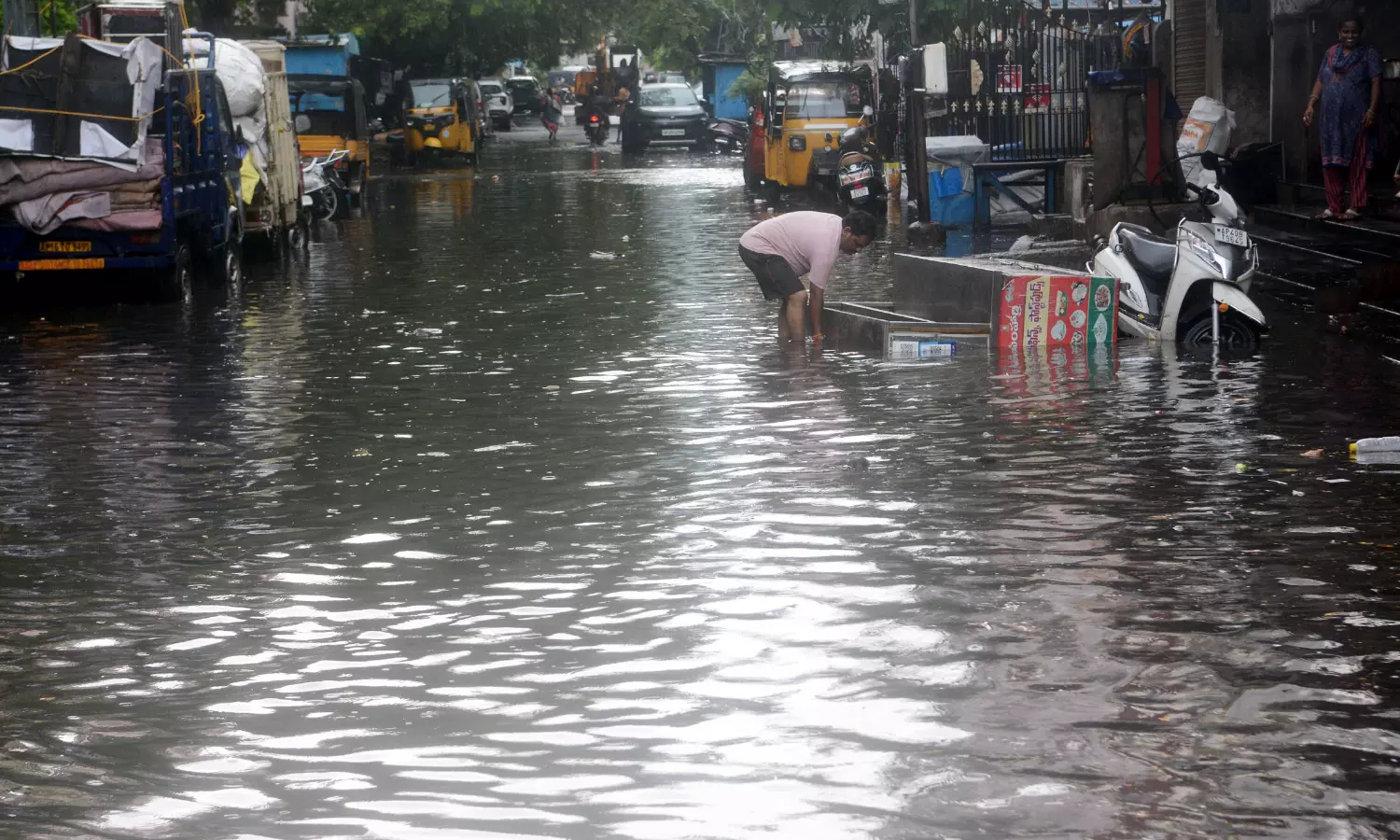 Several low-lying areas in Visakhapatnam were inundated with stormwater, and in some places, water overflowed onto main roads. In KRM Colony under Ward No. 16, two motorcycles were reportedly washed away in the sudden downpour.