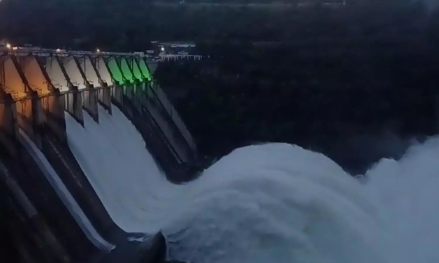 Three crest gates have been opened up to 10 feet to release excess water. The reservoir's live storage has reached 197 TMC feet, compared to its full capacity of 215 TMC feet.