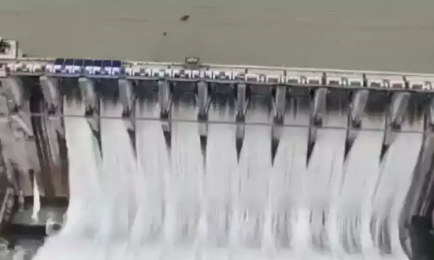 For power generation, officials released 28,871 cusecs to the AP powerhouse and 35,315 cusecs to the Telangana powerhouse, while another 5,78,440 cusecs were discharged through the spillway. As a result of these heavy outflows, Nagarjunasagar is receiving 5,93,516 cusecs, which is also being discharged downstream.