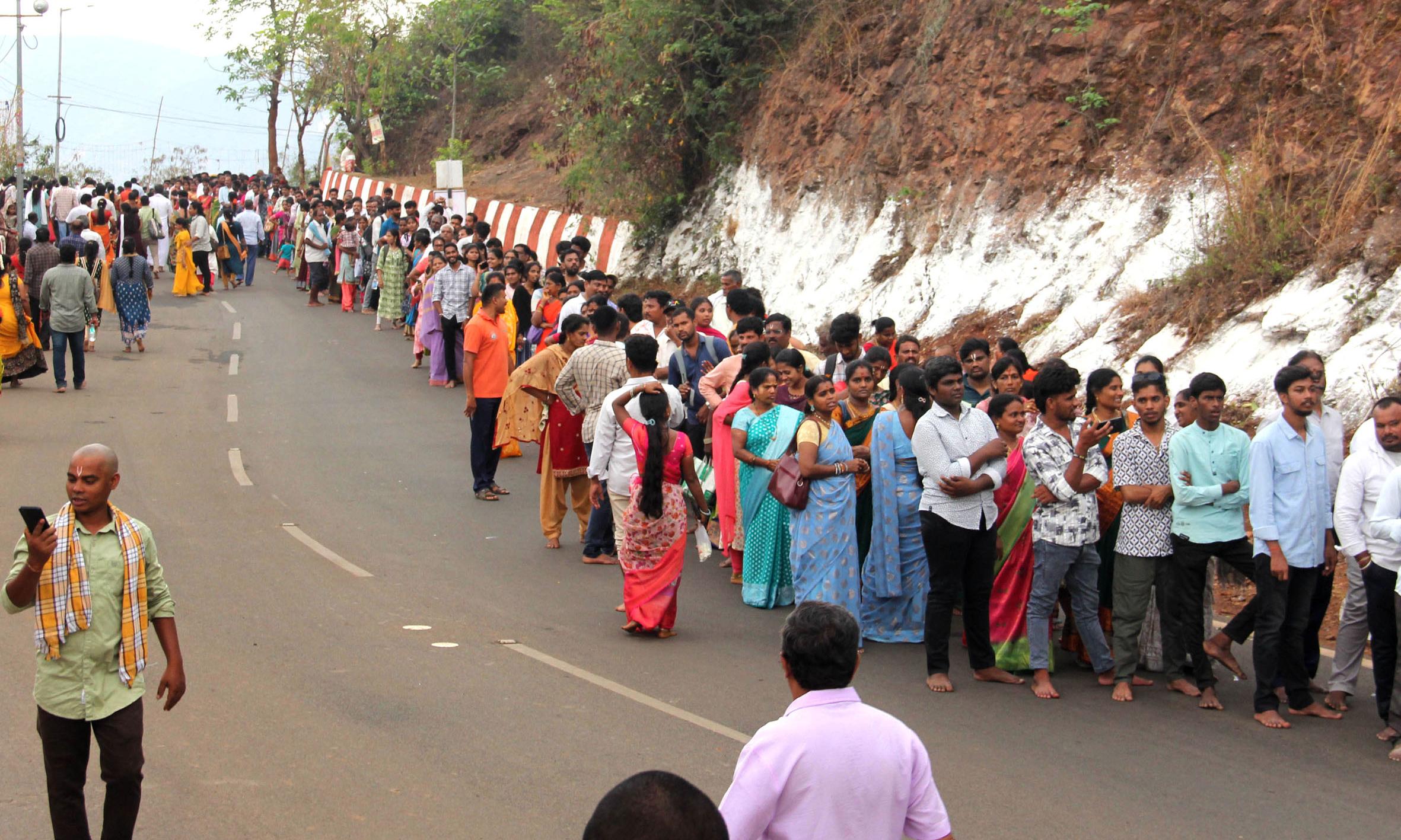 The sacred hill echoed with chants of “Govinda” as pilgrims queued from early morning, many considering the darshan especially auspicious. As per temple tradition, the deity will remain visible until covered again with around 12 manugus of sandalwood paste.