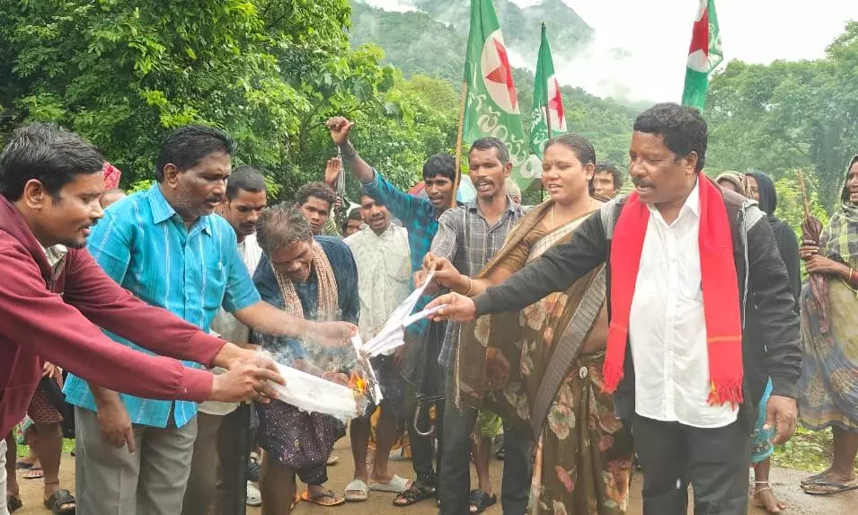 CPM leaders, including ASR district secretary and ZPTC member Deesari Gangaraju, Anakapalle district secretary D. Venkanna, and local leader S. Nagulu, visited the proposed project site along with villagers and publicly burned a copy of the order.