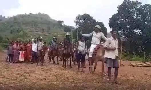 Visakhapatnam: Tribals in Chalisingam of Ravikamatham mandal of Anakapalli district staged a unique three-kilometre padayatra along with a set of horses, seeking the laying of a 3.02km BT road connecting their village to Chikayapadu.