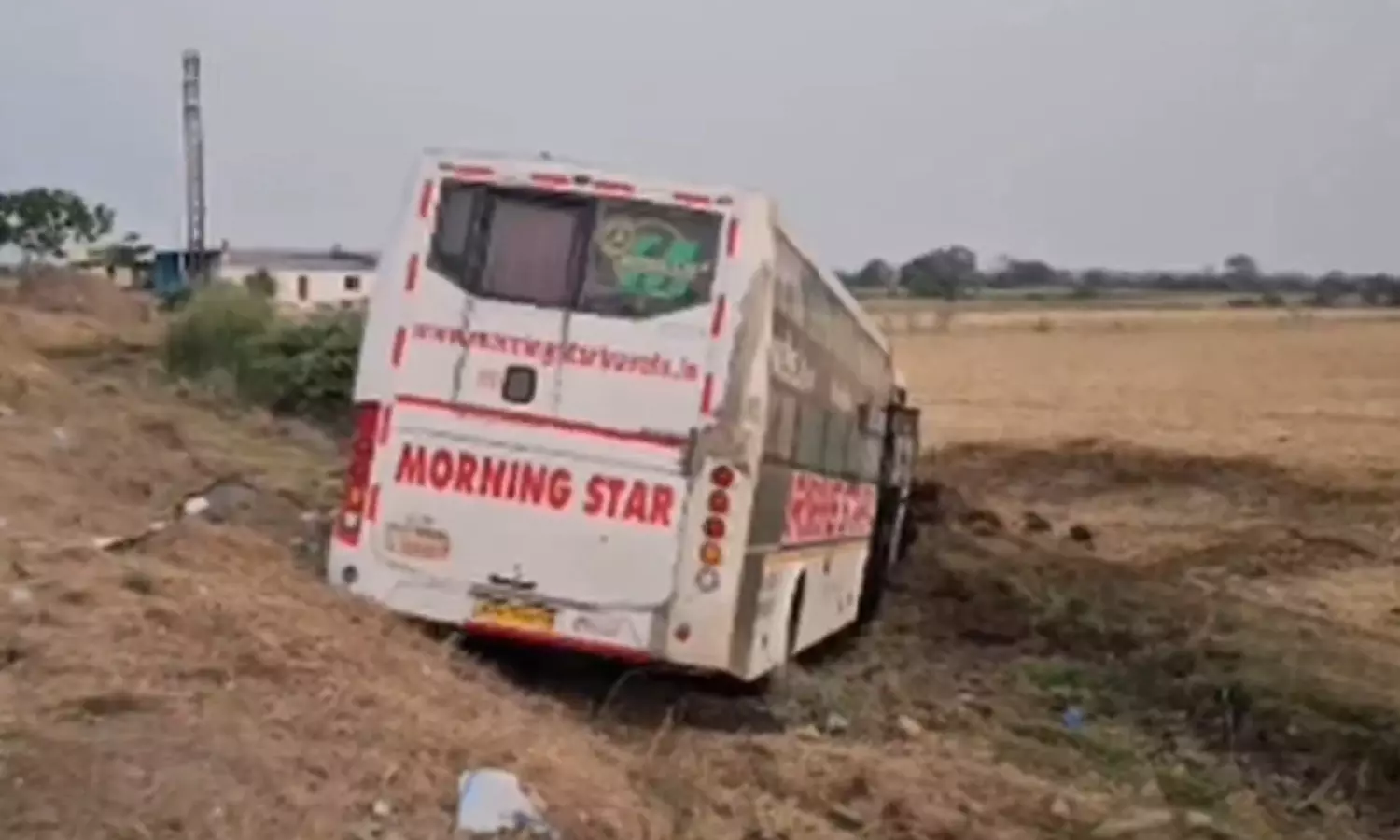 According to sources, the Morning Star Travels bus, carrying 35 passengers, was travelling at a considerable speed when one of its tyres burst with a loud noise near Nandyal. The driver reportedly attempted to control the vehicle but failed, causing it to swerve off the highway and plunge into adjoining agricultural fields.