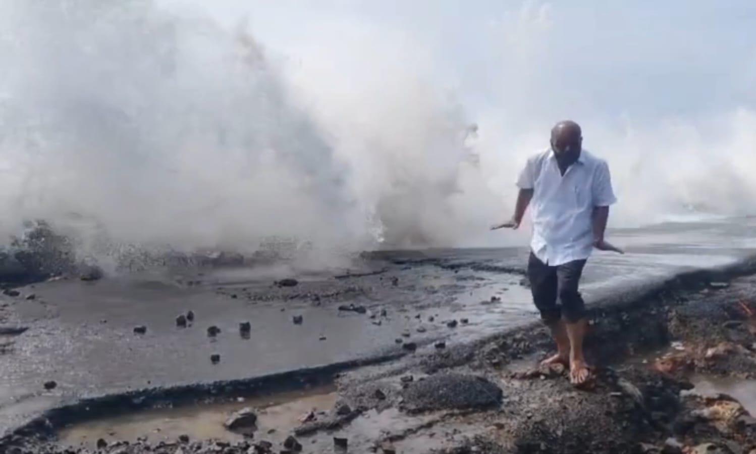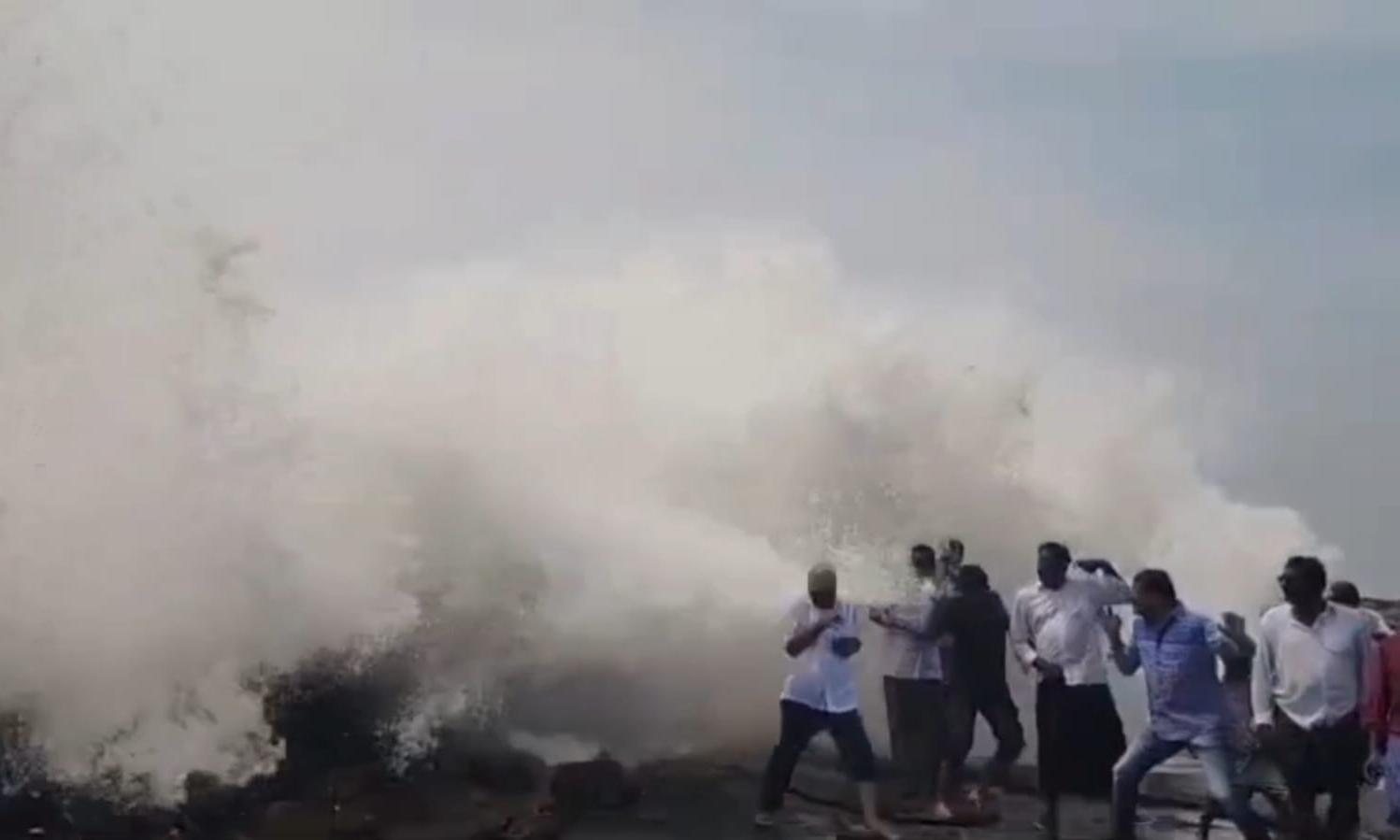 Uppada Coast Turbulent, ex-MLA Tumbles in Raging Sea Waves