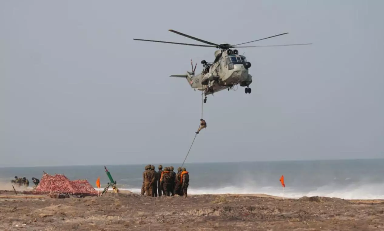 Visakhapatnam: The Indian military and the US forces exhibited their amphibious landing drill on Kakinada Beach on Friday as the culminating event in Exercise Tiger Triumph 2025.