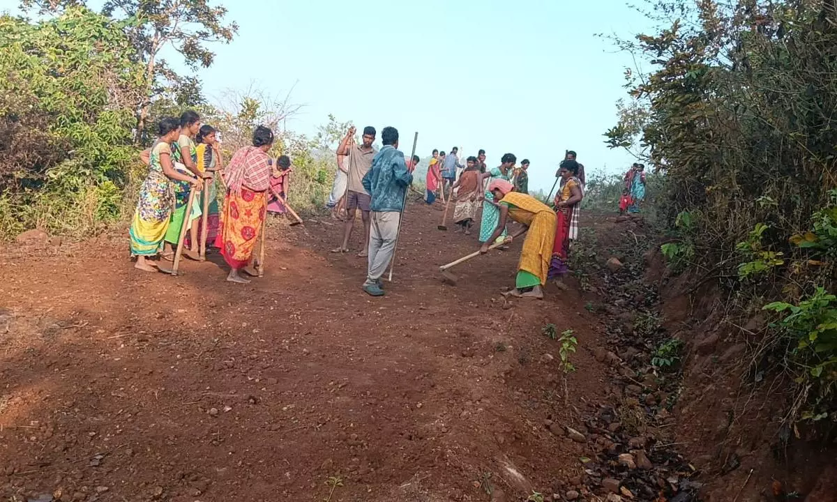 Visakhapatnam: Vexed by the negligence of the officials who failed to take steps for the completion of a road project, 120 Kondu tribal people of Particularly Vulnerable Tribal Groups (PVTGs) constructed a 1.5-km road connecting Jajulu Bandha to Pitri Gadda village by levelling the rough terrain in two days, bridging a critical gap for their isolated communities. Jajulu Bandha, a small hilltop village in the ASR district’s Moolapet Panchayat, is home to 30 Kondu families. Access to this remote area had long been arduous, requiring a difficult journey from Arla village via Pitri Gadda.