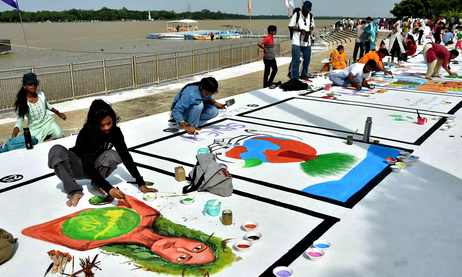 VIJAYAWADA: Children and youth of Vijayawada participated in large numbers in a lively floor painting and drawing competition that the NTR district administration and Vijayawada Municipal Corporation (VMC) organised at the Haritha Berm Park on the banks of Krishna River on Sunday.