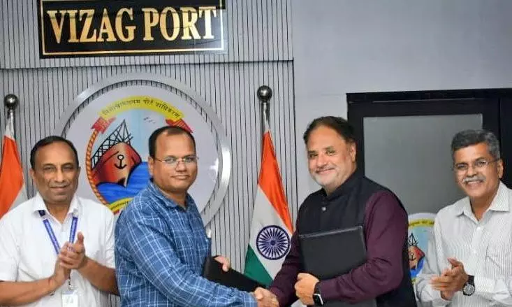 Visakhapatnam: Visakhapatnam Port has officially signed a contract agreement with Hindustan Shipyard Limited (HSL) on Wednesday for the design and construction of a 60-ton Bollard Pull Tug. The agreement was executed by Capt. T. Srinivas, Deputy Conservator of the Visakhapatnam Port Authority (VPA), and Cmde Girideep Singh (IN Retd), Director of Ship Building at HSL.