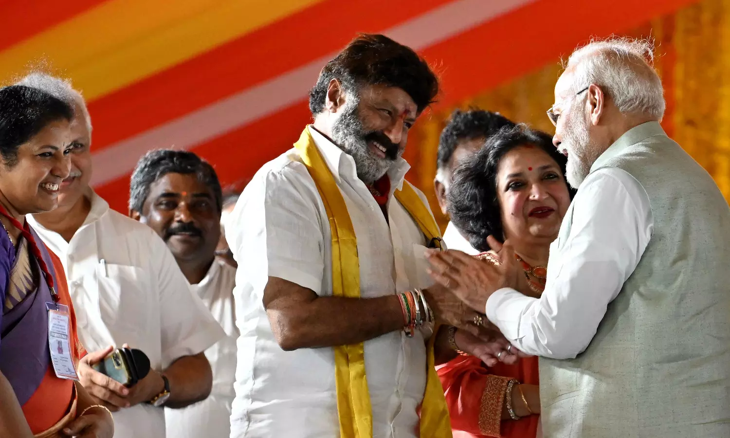 After completion of the swearing-in ceremony, the Modi was about to leave the place after greeting the dignitaries on the dais. Jana Sena chief Pawan Kalyan whispered into his ears to meet his brother and film star Chiranjeevi on the dias. The PM swiftely reached up to Chiranjeevi and greeted him. Modi took the hands of both Chiranjeevi and Pawan Kalyan and raised them in the air, in a gesture of solidarity with them.