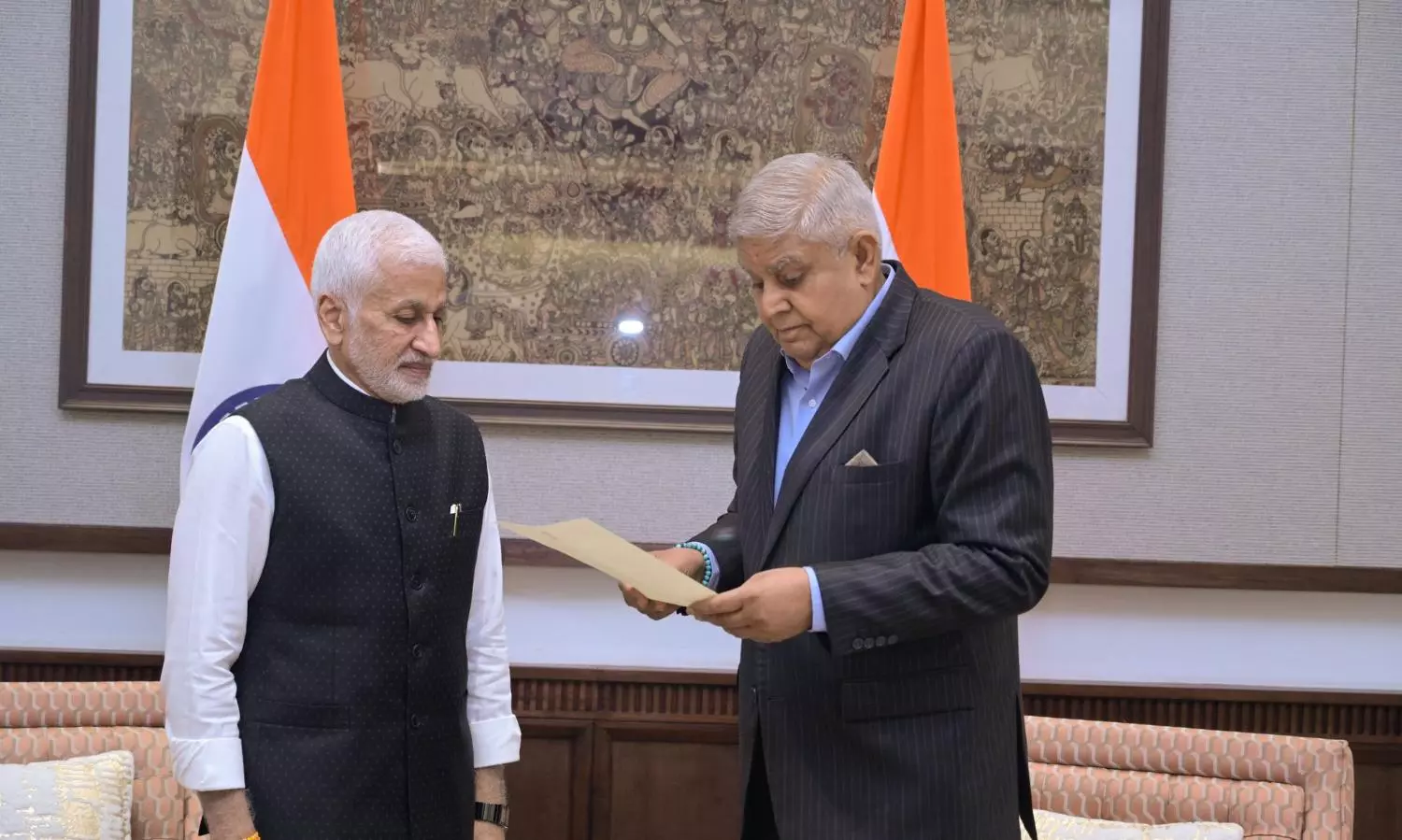 VIJAYAWADA: V. Vijayasai Reddy on Saturday met Rajya Sabha chairman Jagdeep Dhankhar and handed over his resignation letter as MP.