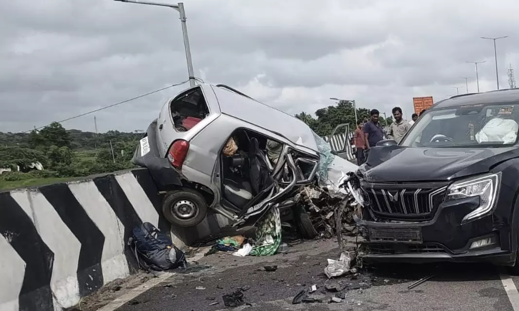 The accident occurred while the family was traveling from Vijayawada to Hyderabad.
