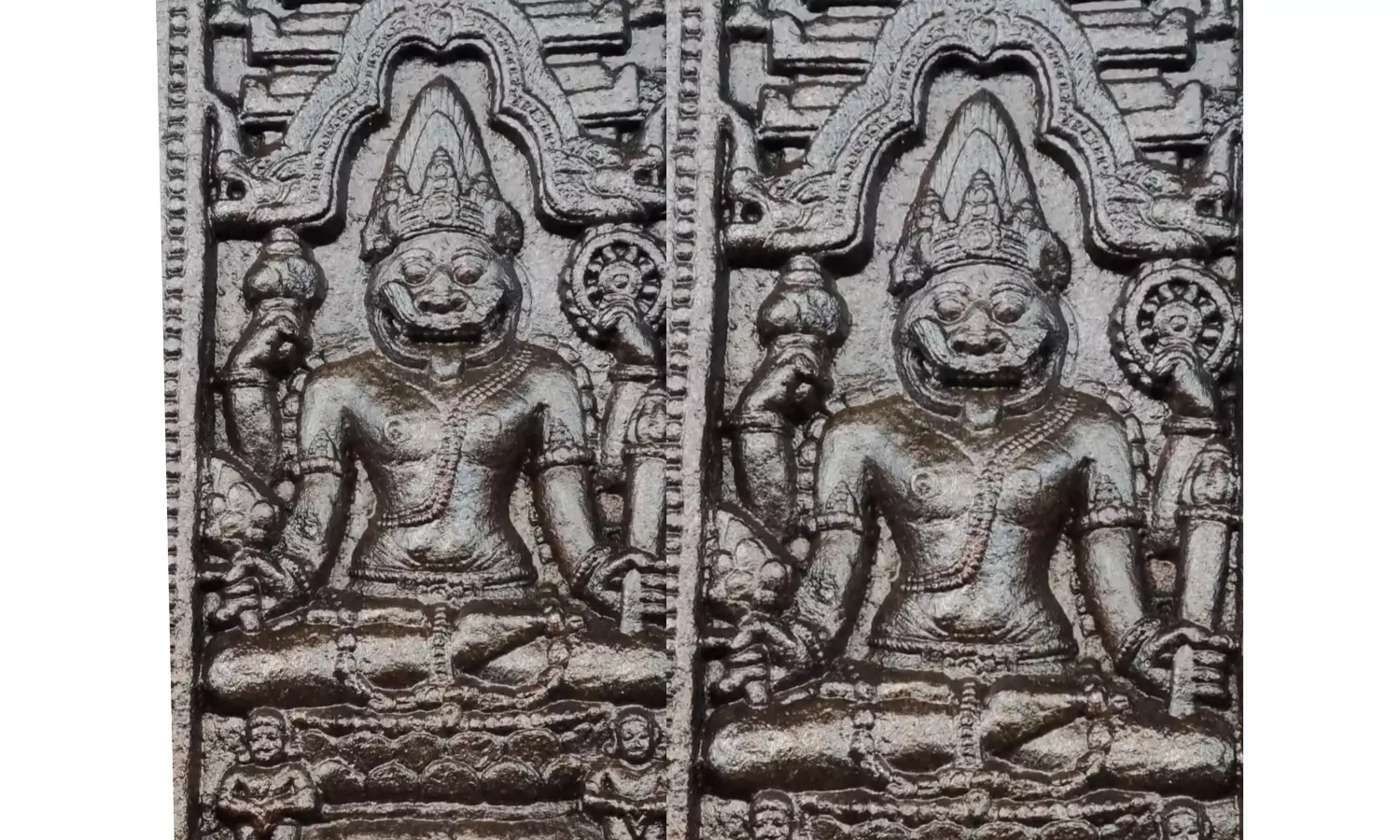 Taking to this correspondent on Thursday, Adhikari said what makes this sculpture particularly profound is the presence of two yogic practitioners (sādhakas) in yoni mudrā beneath the divine seat (pīṭha). In yogic philosophy, the yoni mudrā is revered as a powerful gesture that calms the mind, detaches it from worldly distractions and centres it on higher consciousness. This depiction symbolically conveys the sacred process of meditation (dhyāna) and the transformative power of yoga.