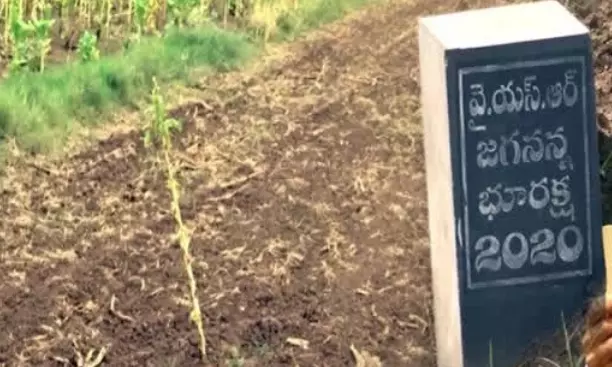 During the YSRC tenure, approximately 70 lakh marker stones were installed. Another 7 lakh stones were left unused; all these bearing Jagan Reddy’s name. The present government of Nara Chandrababu Naidu decided to erase the name from these stones.