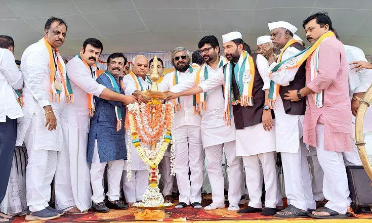 The Congress gathering, held at the Taluk Stadium, saw key leaders such as Ministers Eshwar Khandre, Shivananad Patil, Party's chief whip in Council Saleem Ahmed, KPCC Working Presidents JC Chandrashekar, and Vinay Kulkarni taking part.