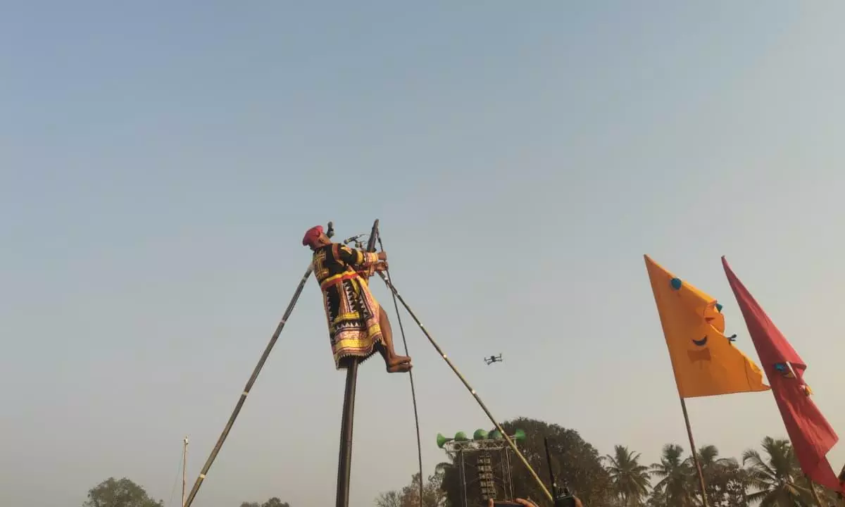 After pausing briefly and gazing at the sky, he uttered the word “Saddale” and proclaimed “Sampayitale Parak”, before leaping down from the bow. Members of the Gorava community standing below caught him with a blanket, in keeping with tradition.