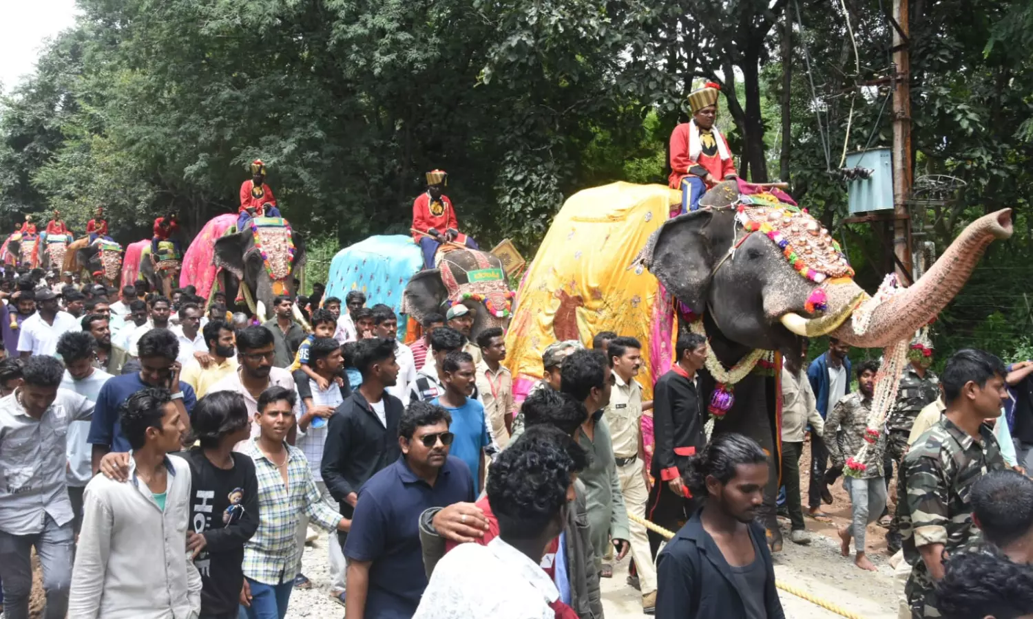 The selected tamed elephants drawn from various elephant camps of the State and the decrorated elephants are major attraction on jumbo savaari (elephant procession) day, the finale of the Dasara festivities. Elephant take pout a procession from Mysore Palace premises to Bannimantap, covering a distance of about 5-km in the jumbo savaari.