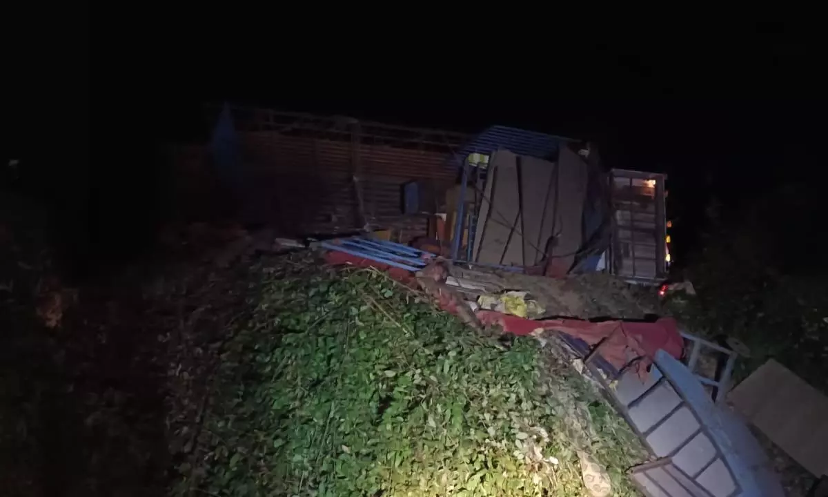 According to police reports, the truck carrying iron swings, which was en route from Sagara to Honnavar, had six occupants. The truck is said to have overturned around 1.30 am, possibly due to the sharp curve at Sulimurki causing the vehicle to lose control.
