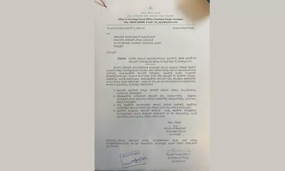 On the same day, the Range Forest Officer of Kundapur Range issued a letter to KNNL officials, urging the implementation of safety measures in the Varahi canal.