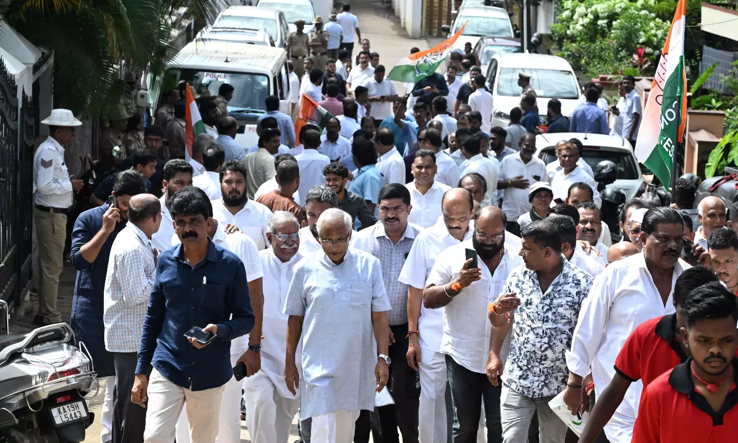 Originally intended as a march to the BJP office, the padayatra was redirected to Kankanady, where Congress leaders and supporters gathered to denounce the attack and express solidarity with D'Souza. During the event, Congress leaders delivered sharp criticism of the BJP, accusing its leaders of attempting to silence D'Souza through false allegations.