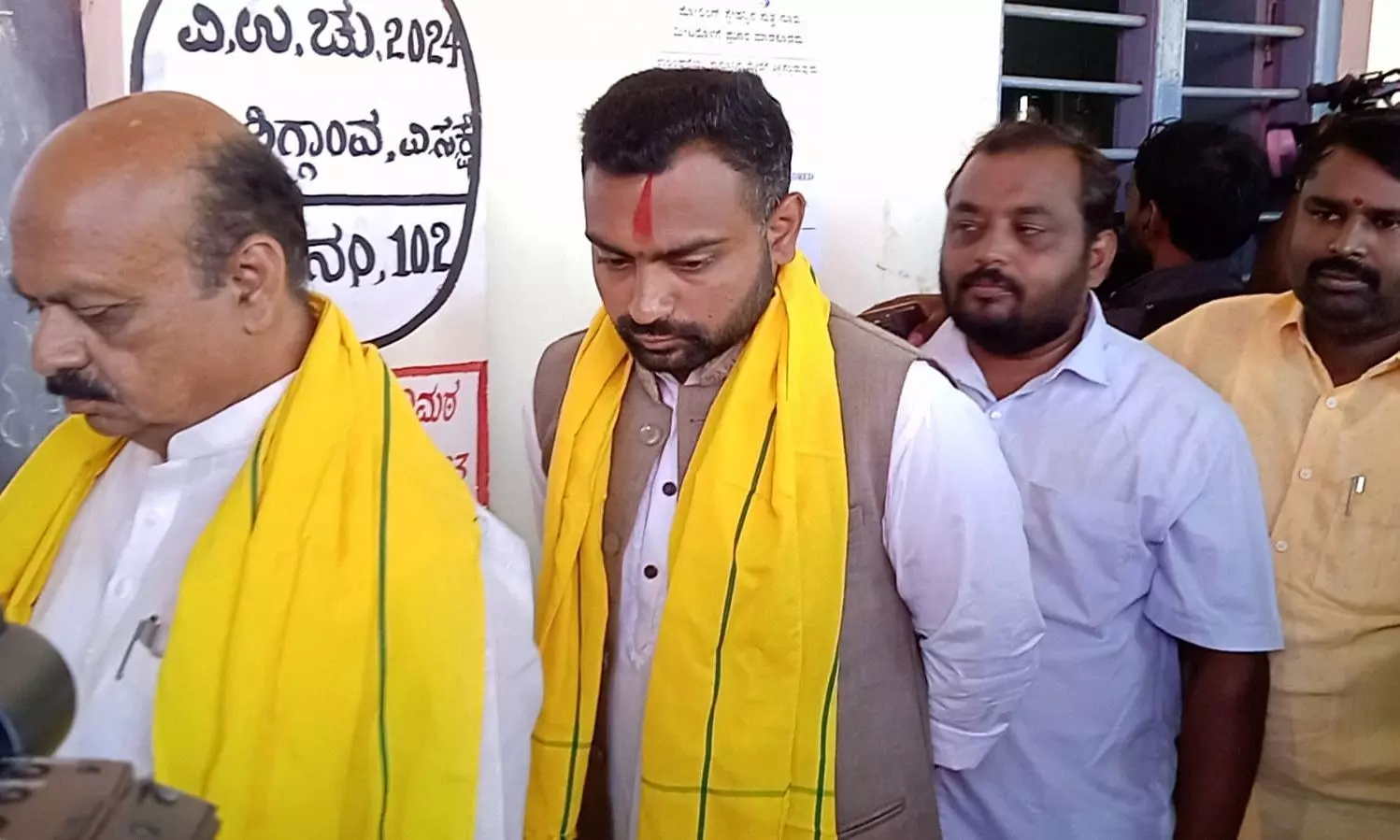 In Shiggaon, BJP candidate Bharat Bommai and his father, former Chief Minister Basavaraj Bommai, voted at Government Model Kannada Boys' School No. 1 after offering prayers at Ashok Nagar’s Maruti Temple and Hubballi’s Parshva Padmalaya Dham Jain Temple.