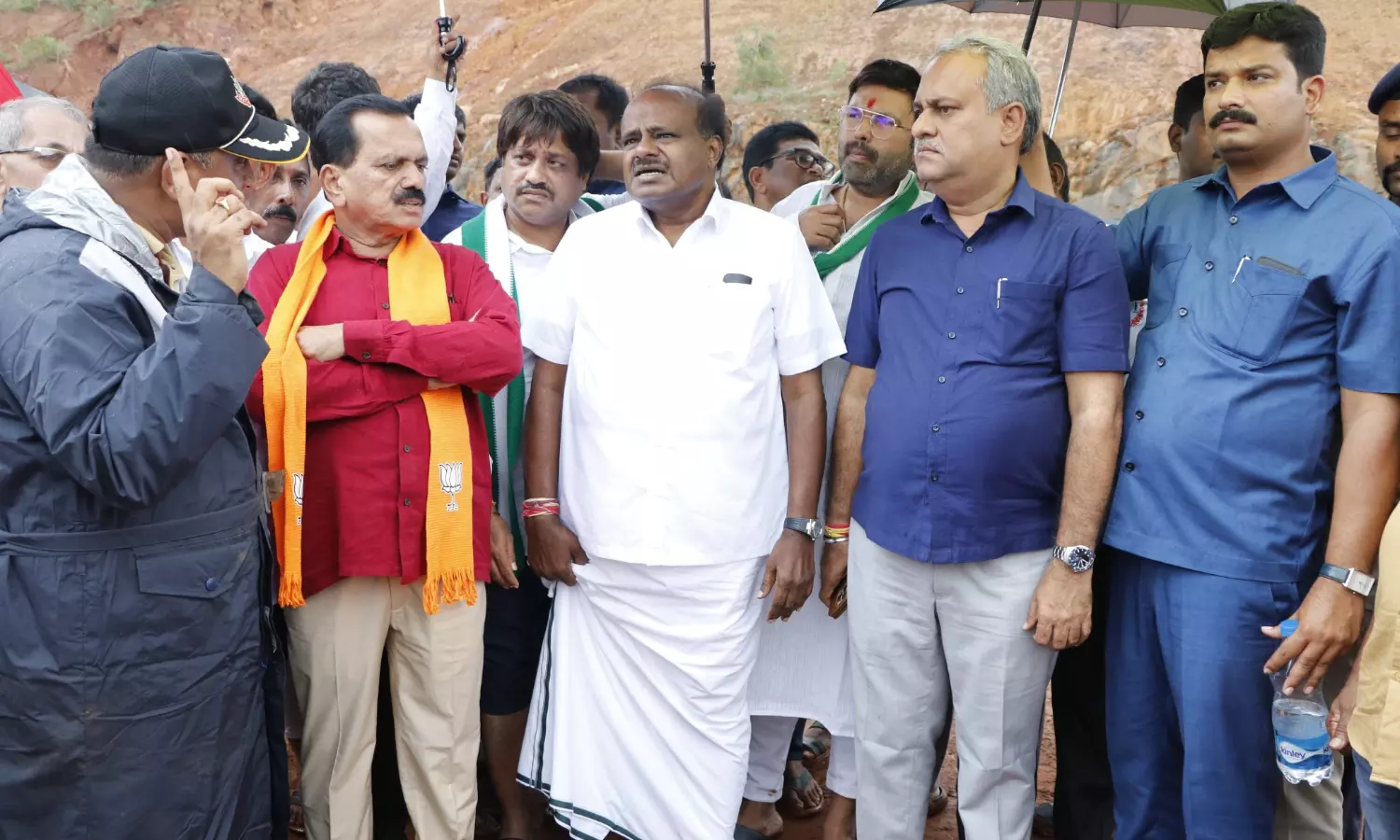 Karwar: Union Minister HD Kumaraswamy visited the landslide site in Shiruru village, Ankola Taluk on Saturday, and called on the state government to take immediate and effective measures to address the extensive rain damage in the region.