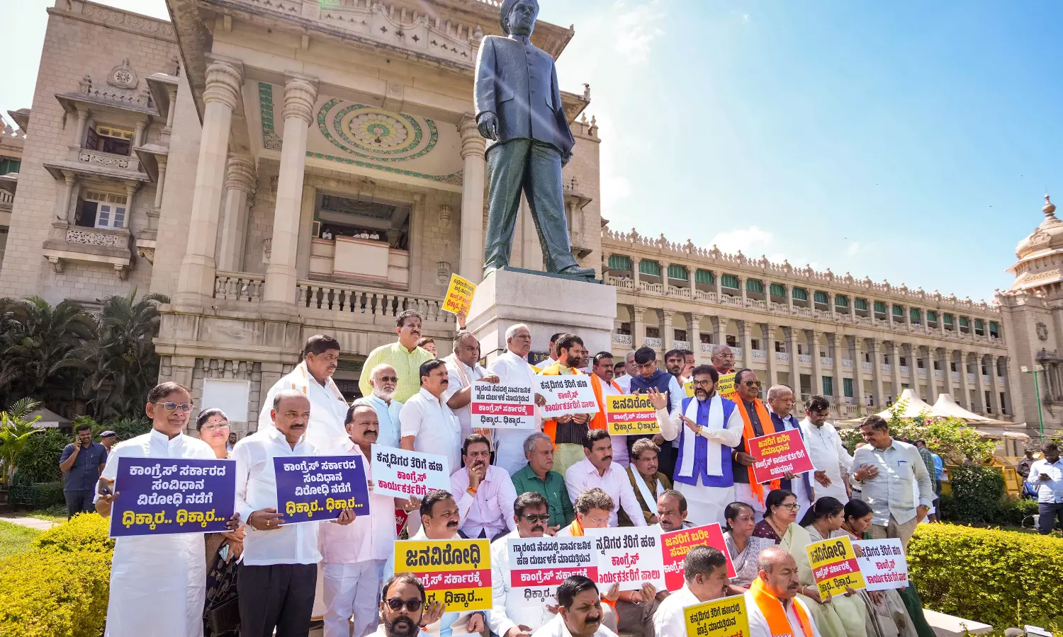 The protest began from the well of the House on Tuesday, demanding that the government dissolve all these committees. The opposition insisted that if oversight was necessary, then panels should be headed by the MLAs and not Congress workers, despite Deputy Chief Minister D K Shivakumar's assurance that the cabinet would look into the matter.