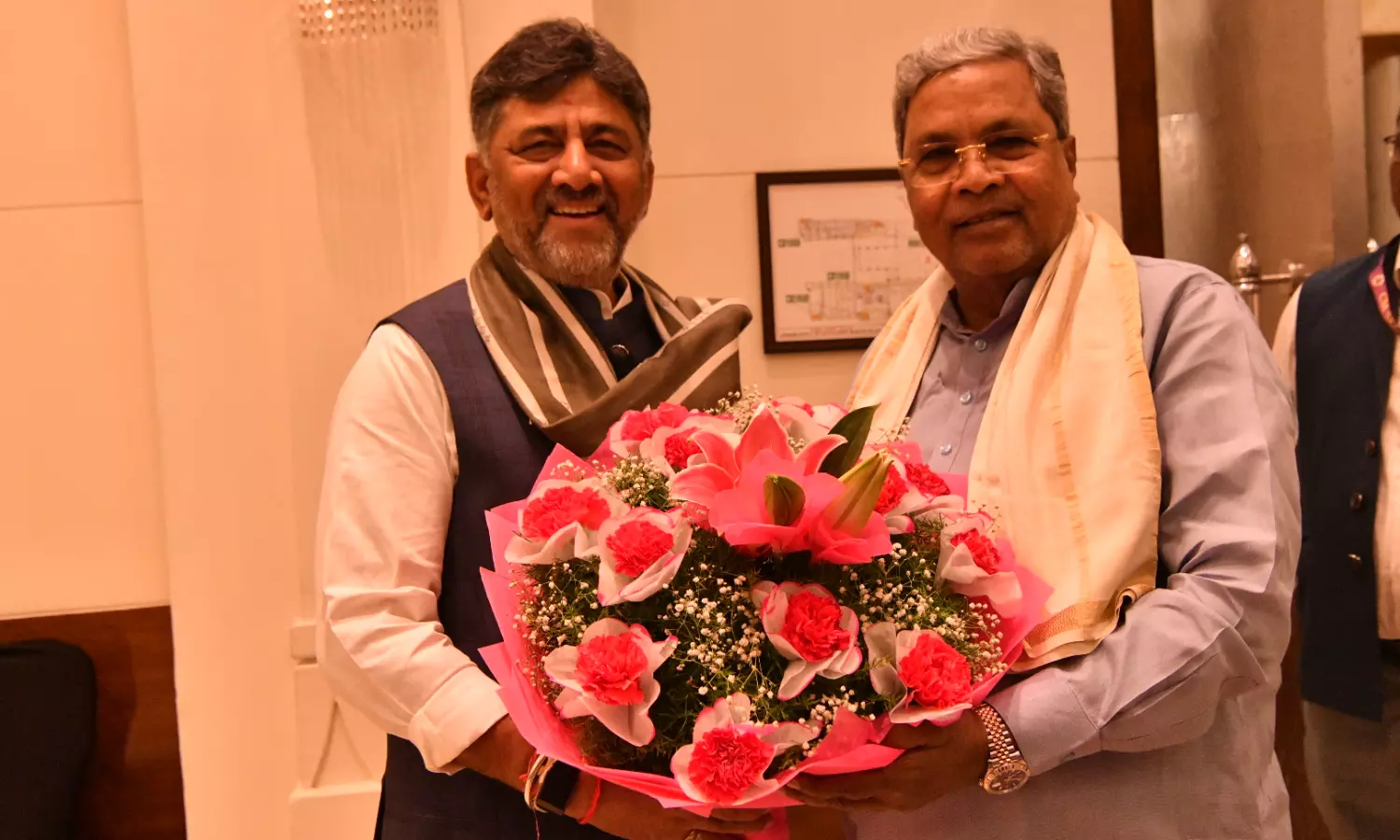 BENGALURU: Deputy Chief Minister D.K. Shivakumar completed six years as president of Karnataka Pradesh Congress Committee (KPCC) on Tuesday. While congratulating Shivakumar on completion of 6 years, Chief Minister Siddaramaiah quipped “Shivakumar is junior to me" and stated "a bright future awaits him (Shivakumar).”