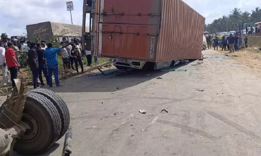 The container driver identified as Arif, a native of Jharkhand, treated for his injuries at a hospital told reporters that he drove the container from Dabaspet to Bengaluru via bypass and moved slowly on the road. I noticed a car and the car driver applied brakes at once and in order to avoid collision with the car, I took the container to the right and then turned to the left.