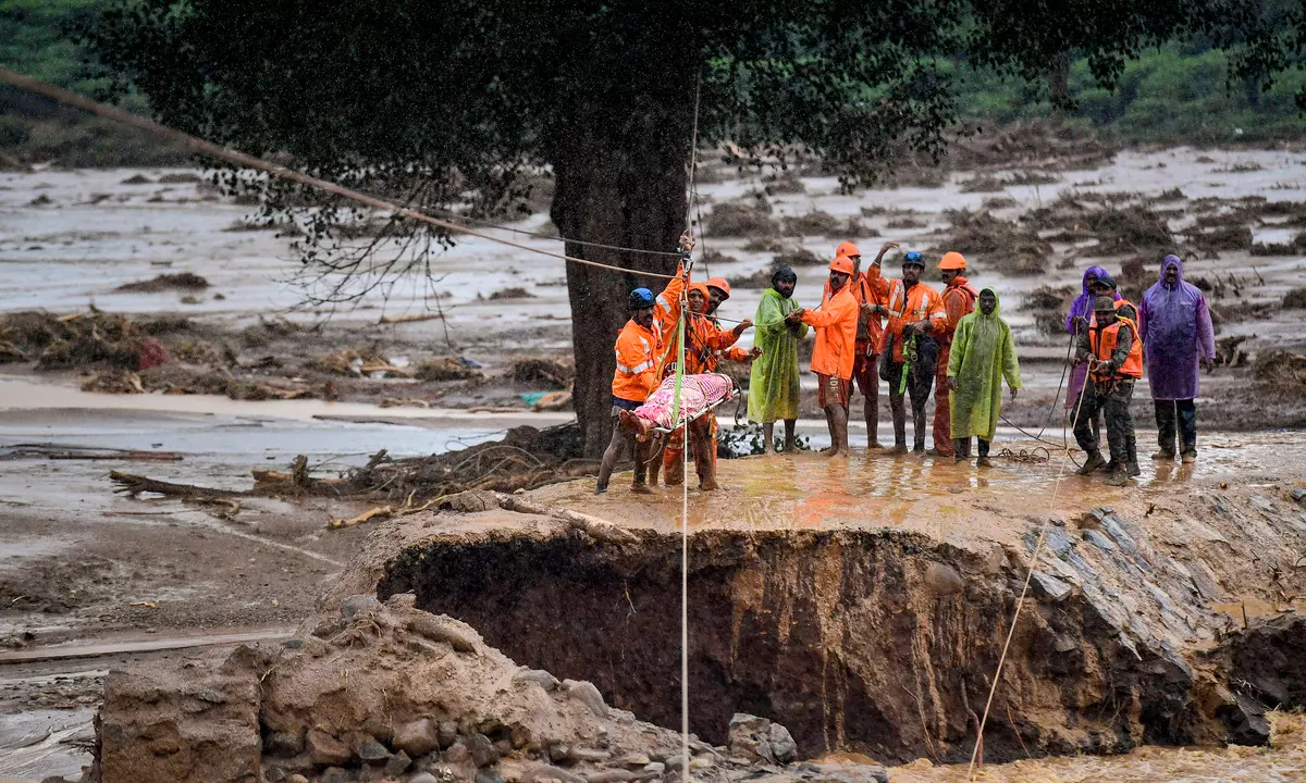 "All the houses beneath my building were washed away in the landslide. There are many people, including the elderly and children, stranded at a resort on the hilltop in Mundakai. Initially, they took shelter in a Madrasa but later moved up to the resort on the hilltop. There are approximately 50 individuals in that area. Please save them," said an elderly man who was rescued from the landslide-hit area.