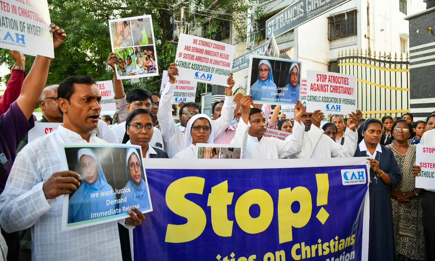 Nuns Preethi Mary and Vandana Francis, both from Kerala, along with one Sukhman Mandavi, were arrested by the Government Railway Police (GRP) at Durg railway station in the state on July 25 following a complaint by a local Bajrang Dal functionary, who accused them of forcibly converting three women from the tribal-dominated Narayanpur district and trafficking them.