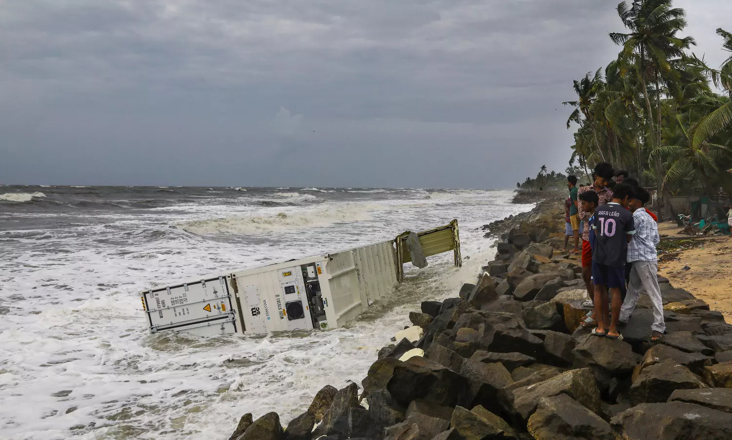 In the Thiruvananthapuram district, small plastic particles known as nurdles have accumulated due to the crashing of containers. Efforts to clean the affected areas are underway, with police, SPC, Apda Mitra, and civil defense volunteers deployed along the affected coastal areas. A drone survey has already been completed in these locations.