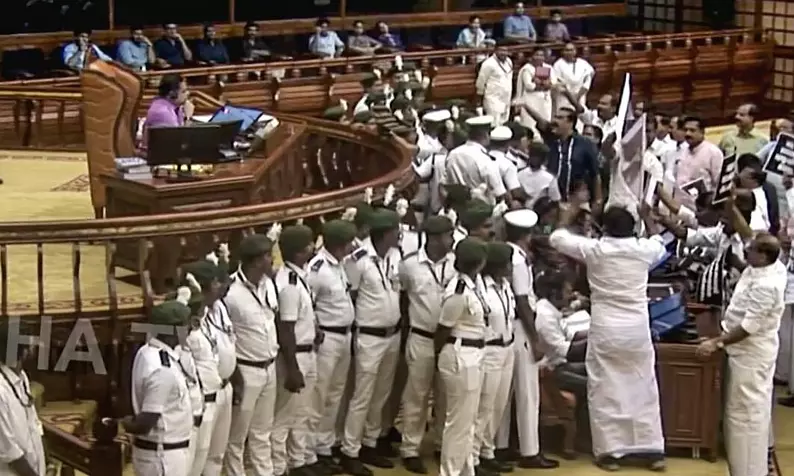 Kerala Assembly bars opposition MLAs Roji M John, M Vincent and Saneesh Kumar Joseph for disrupting proceedings