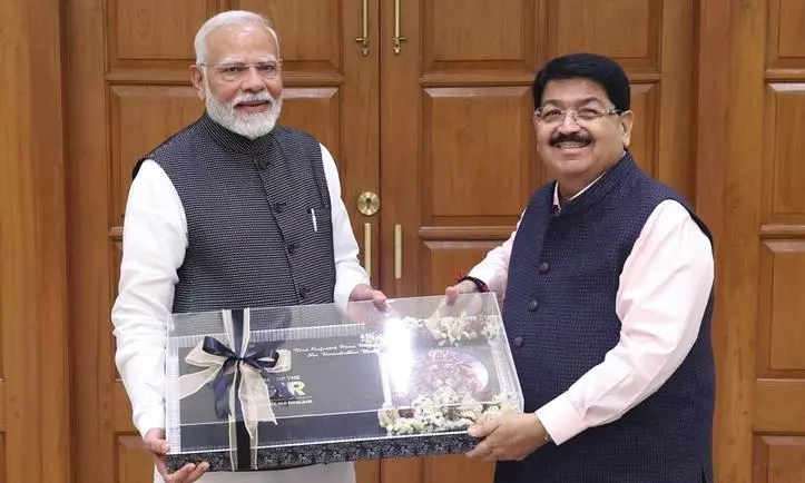 Vijayawada: Rajya Sabha MP Parimal Nathwani on Wednesday presented the first copy of his new book ‘Call of the Gir’ to Prime Minister Narendra Modi in a small family get-together at the PM’s residence. The Prime Minister not only gracefully received the book but also met Nathwani’s family and exchanged pleasantries.