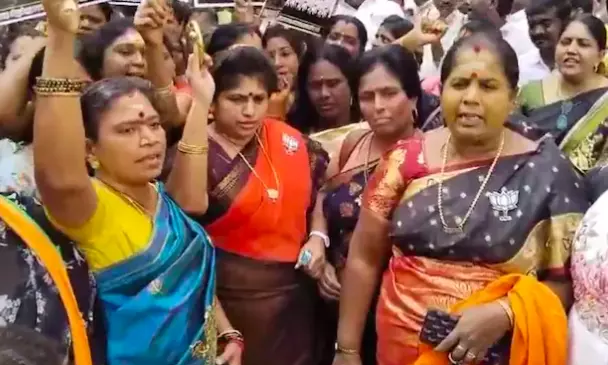 Tamil Nadu BJP's women's wing had called for a mass rally from Madurai to Chennai seeking justice for the victim of the sexual harrassment on the Anna university campus. Despite the police denying permission for the rally, around 300 women cadres and functionaries of the BJP Mahila Morcha led by state president Umarathi, BJP national executive member Kushbu Sundar and C. Saraswathi, MLA, gathered at the Simmakkal Chellathamman temple in Madurai on Friday morning.