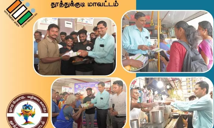 Thoothukudi: In an innovative bid to secure 100 percent polling, ThooWith the Assembly elections scheduled for April 23, the Election Commission has intensified its outreach initiatives to encourage maximum voter participation.With the Assembly elections scheduled for April 23, the Election Commission has intensified its outreach initiatives to encourage maximum voter participation. As part of this effort, the Thoothukudi district administration, in association with a voluntary organisation, organised a special awareness programme at the smart city bus stand.