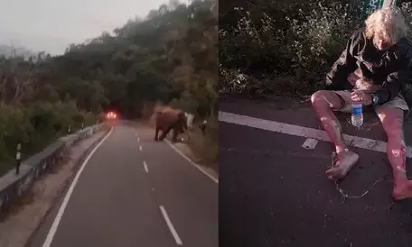 The incident occurred when the tourist, who was riding a motorcycle, was crossing a stretch of the ghat road despite noticing the presence of the elephant on the road. In the video, which was apparently shot by those in a vehicle that came behind, the man could be seen speeding ahead. Several other road users had halted their vehicles at a safe distance from the wild animal. The foreign motorist veered to the right side of the road to avoid the animal.