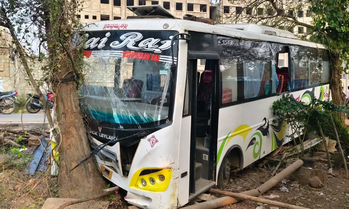 The incident occurred around 5 pm when the bus, carrying students from the college to the hostel at Palvancha, went out of control about 100 metres from the main gate of the college and hit a tree adjoining a house. About 40 students were travelling in the bus at the time.