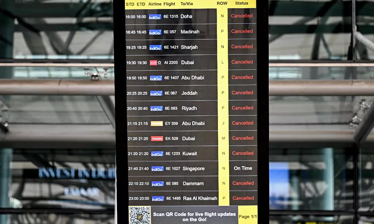 Hyderabad: Flight cancellations between Hyderabad and several Gulf countries continued on Friday due to the ongoing tensions in West Asia. Officials said that 12 flights operating from Hyderabad to Gulf destinations have been cancelled.