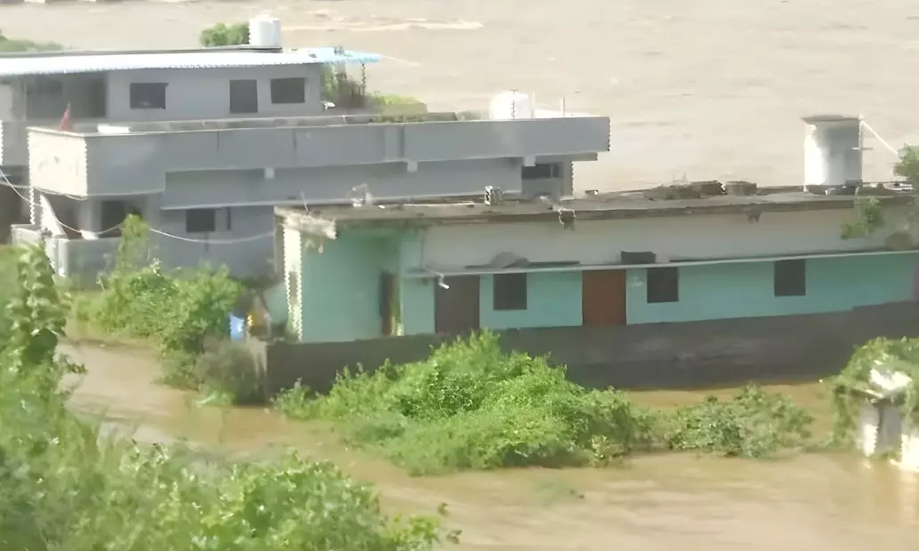 Nalgonda: As the water level in the Munneru River rose to 25.8 feet, floodwaters entered several residential areas in Khammam city, including Venkateshwara Nagar, Ganesh Nagar, Bokkalagadda, Sai Prathap Nagar, Sundaraiah Nagar, Manchikanti Nagar, and Mothi Nagar.