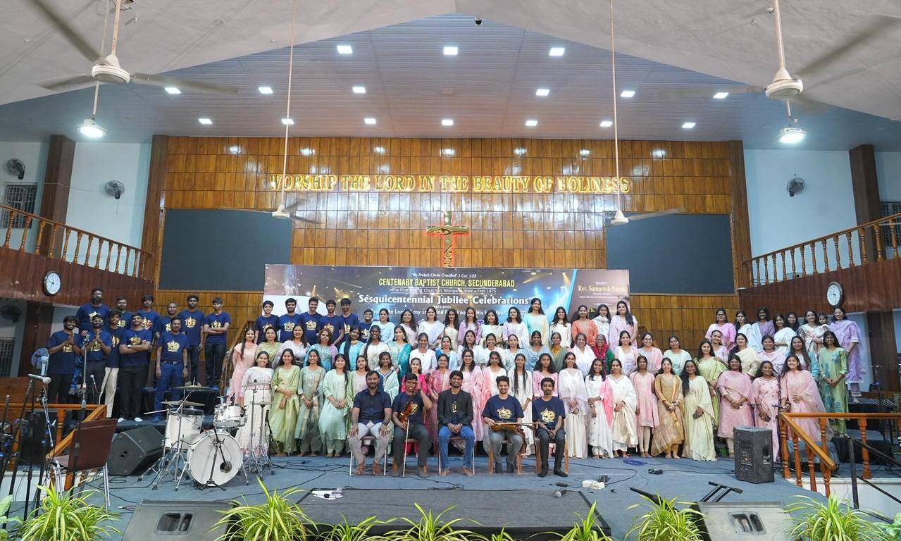 Hyderabad: Choristers lifted their voices in celebration as the 150-year-old Centenary Baptist Church at Clock Tower, Secunderabad, marked its sesquicentennial jubilee. A 150-member choir, accompanied by violins, percussion and keyboards, mesmerised the congregation during a special Worship Night held on Saturday evening as part of the celebrations.