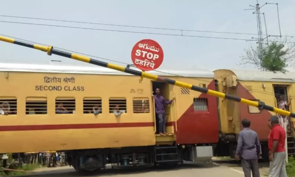NIZAMABAD: Stuck up of railway gates at Madhavanagar in Nizamabad adversely affected the vehicular traffic. The railway staff closed the railway gates near Madhavanagar Sai Baba temple for passing of a passenger train. Madhavnagar is located on Nizamabad-Hyderabad road. While lifting gates after passing of train, the gates were stuck up.