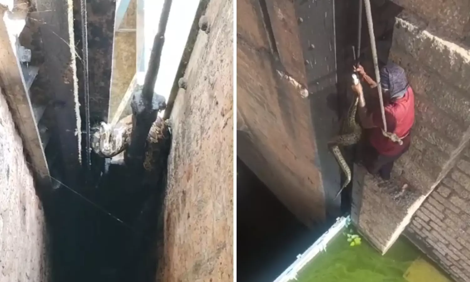 With support from the staff posted at the reservoir, he climbed the dam using a rope and rescued the 20-kilo reptile. The snake has been shifted to Snake Rescue Centre for care and subsequent relocation.