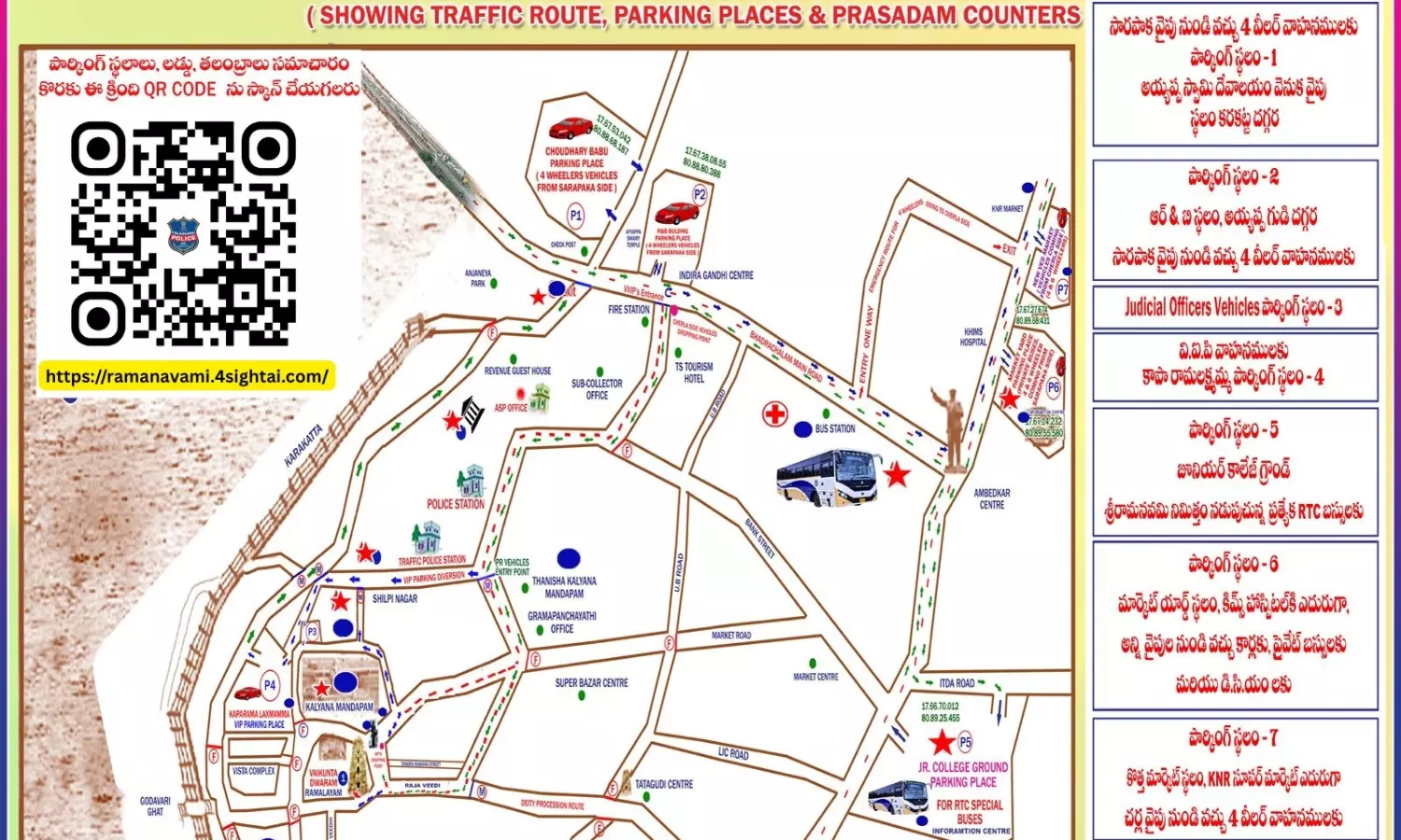 Nalgonda:Bhadradri-Kothagudem district police on Tuesday issued a route map for devotees attending the Sri Rama Navami celebrations at the Sri Seetharamachandra Swamy temple in Bhadrachalam on March 27.