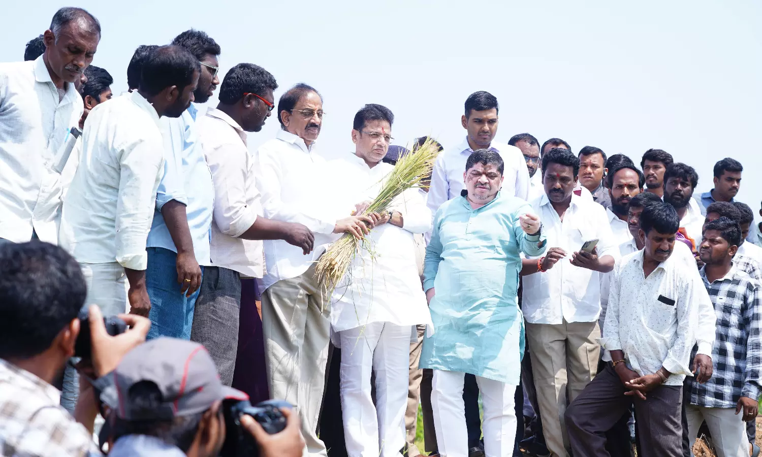 Agriculture Minister Nageswara Rao, Industries Minister Sridhar Babu, and Backward Classes Welfare Minister Ponnam Prabhakar gave the assurance to farmers while inspecting crops damaged during the recent hailstorm at Ibrahimnagar in Siddipet district.