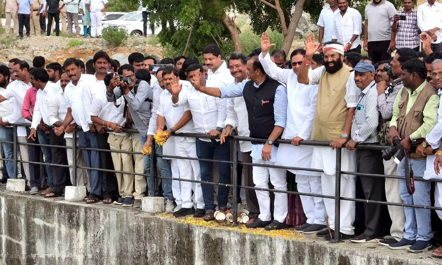 MLC Teenmar Mallanna, MLAs B. Laxma Reddy and Kethavath Balu Naik, former minister Kunduru Jana Reddy, principal secretary (irrigation) Rahul Bojja, engineer-in-chief (irrigation) Anil Kumar and district collector C. Narayana Reddy also attended the programme.
