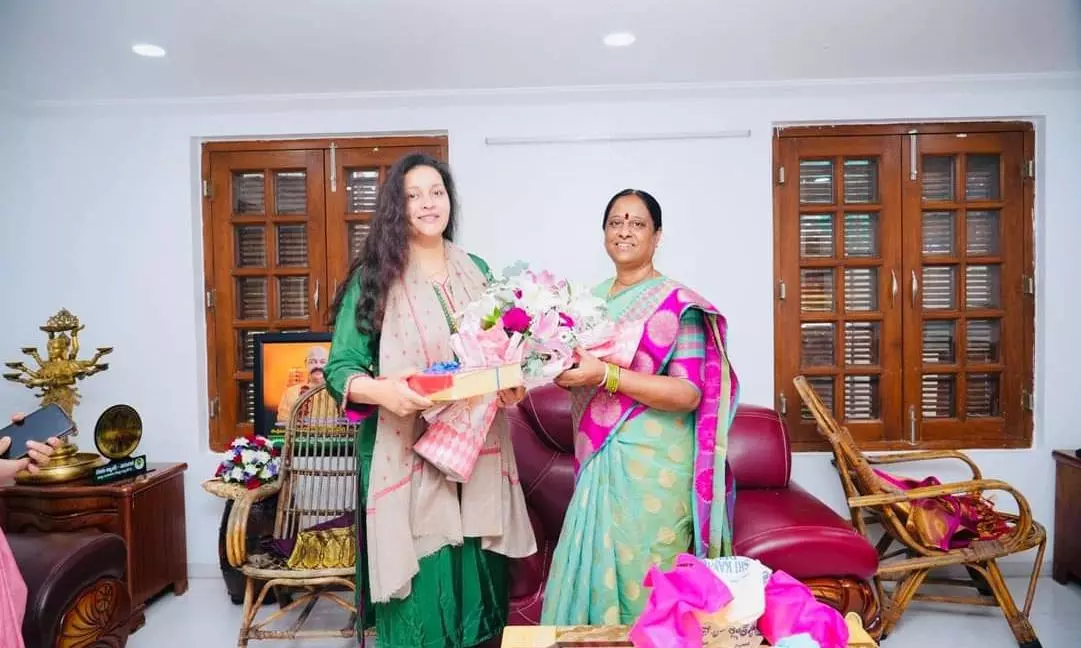 Hyderabad: Actress Renu Desai, chief adviser of the Bhagavadgita Foundation for Vedic Studies, met endowment minister Konda Surekha to discuss the proposed 'Gita University,' which Desai described as a world-first initiative. The meeting also covered state government activities on environmental and wildlife welfare. Surekha felicitated Desai with new clothes and a custom-designed chain created by her daughter Konda Sushmita Patel.