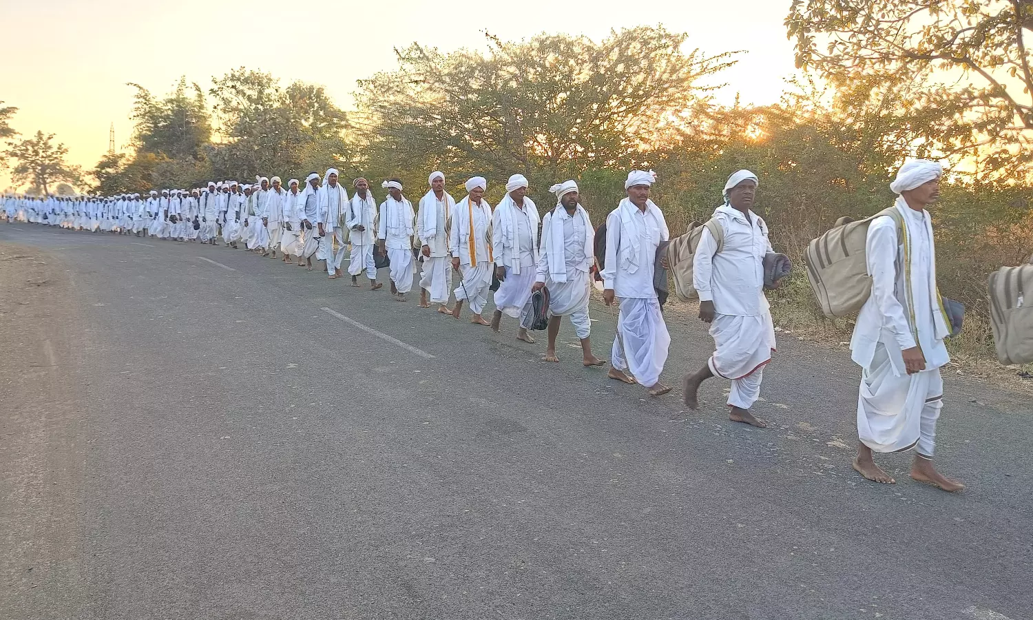 Adilabad: Members of the Adivasi Mesram clan have launched their annual padayatra on foot from Nagoba Temple, daring chilly weather conditions, with temperature dropping to 6 degrees Celsius.
