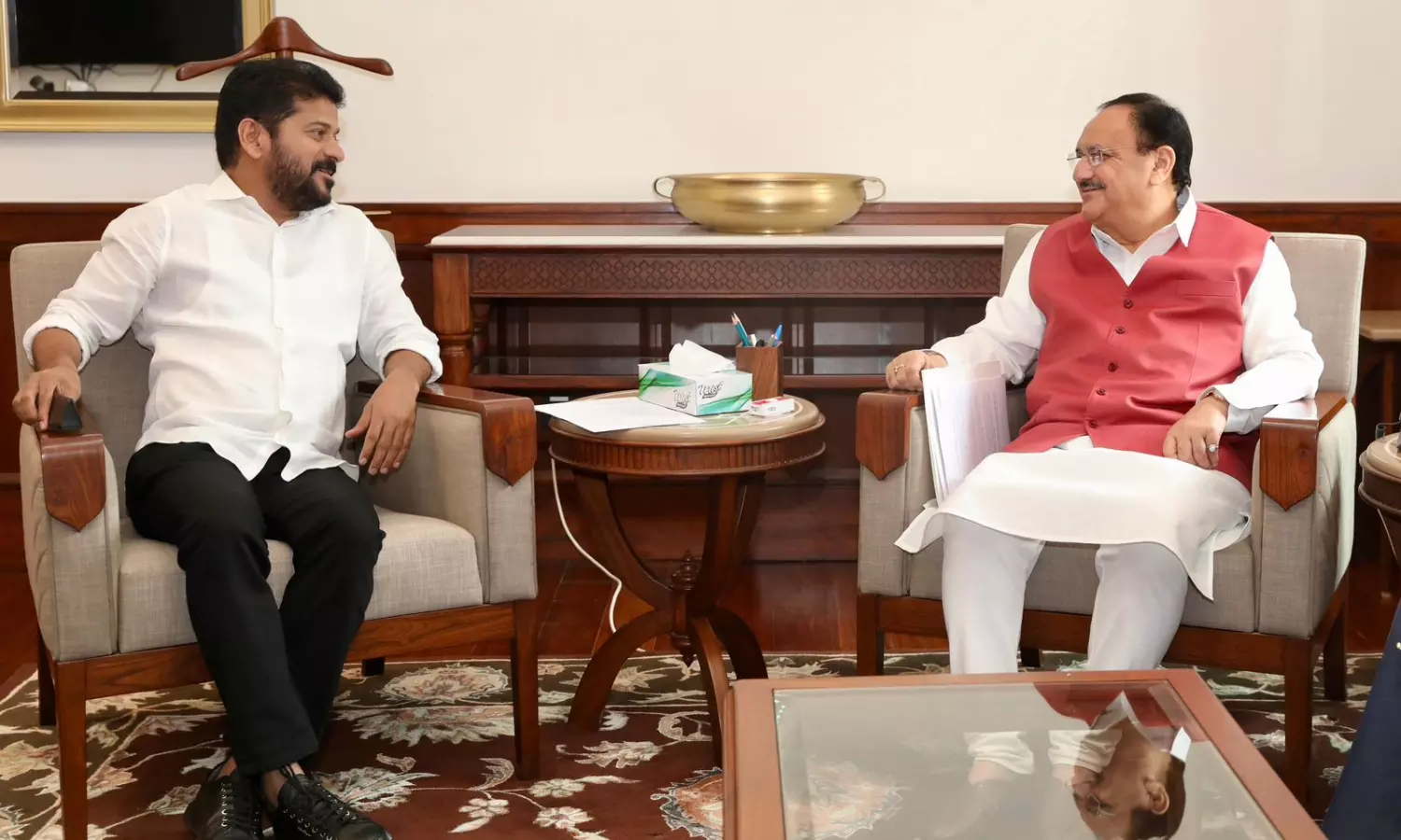 Hyderabad: Chief Minister A Revanth Reddy on Tuesday met Union Health Minister JP Nadda in New Delhi to discuss various pending issues related to Telangana.